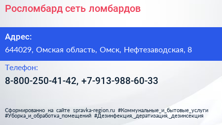 Росломбард, сеть ломбардов по адресу 644029, Омская область, Омск, Нефтезаводская, 8 в дальнейшем Организация, размещена в следующих категориях:
