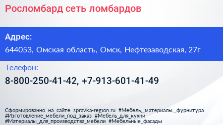 Росломбард, сеть ломбардов по адресу 644053, Омская область, Омск, Нефтезаводская, 27г в дальнейшем Организация, размещена в следующих категориях: