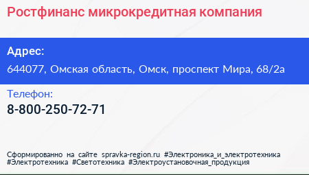 Ростфинанс, микрокредитная компания по адресу 644077, Омская область, Омск, проспект Мира, 68/2а в дальнейшем Организация, размещена в следующих категориях: