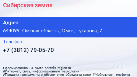 Сибирская земля по адресу 644099, Омская область, Омск, Гусарова, 7 в дальнейшем Организация, размещена в следующих категориях: