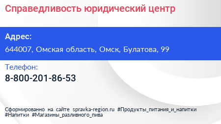 Справедливость, юридический центр по адресу 644007, Омская область, Омск, Булатова, 99 в дальнейшем Организация, размещена в следующих категориях: