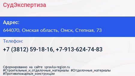 СудЭкспертиза по адресу 644070, Омская область, Омск, Степная, 73 в дальнейшем Организация, размещена в следующих категориях:
