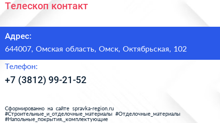 Телескоп-контакт по адресу 644007, Омская область, Омск, Октябрьская, 102 в дальнейшем Организация, размещена в следующих категориях: