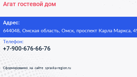 Агат, гостевой дом по адресу 644048, Омская область, Омск, проспект Карла Маркса, 49 в дальнейшем Организация, размещена в следующих категориях: