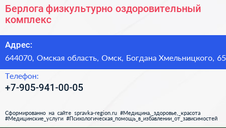 Берлога, физкультурно-оздоровительный комплекс по адресу 644070, Омская область, Омск, Богдана Хмельницкого, 65 в дальнейшем Организация, размещена в следующих категориях: