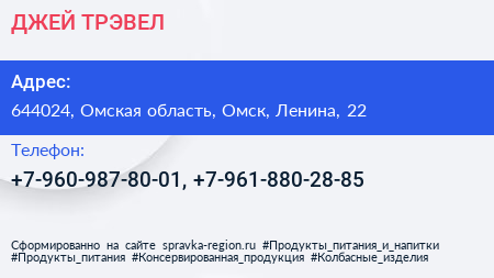 ДЖЕЙ ТРЭВЕЛ по адресу 644024, Омская область, Омск, Ленина, 22 в дальнейшем Организация, размещена в следующих категориях: