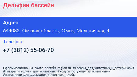 Дельфин, бассейн по адресу 644082, Омская область, Омск, Мельничная, 4 в дальнейшем Организация, размещена в следующих категориях: