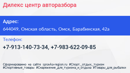 Дилекс, центр авторазбора по адресу 644049, Омская область, Омск, Барабинская, 42а в дальнейшем Организация, размещена в следующих категориях: