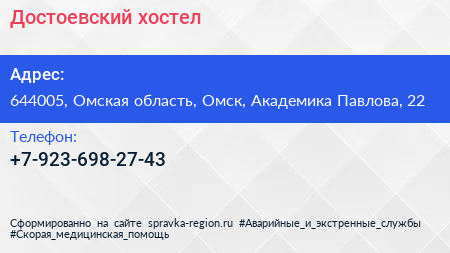 Достоевский, хостел по адресу 644005, Омская область, Омск, Академика Павлова, 22 в дальнейшем Организация, размещена в следующих категориях: