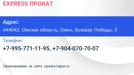 EXPRESS ПРОКАТ по адресу 644042, Омская область, Омск, бульвар Победы, 3 в дальнейшем Организация, размещена в следующих категориях: