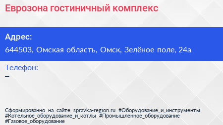 Еврозона, гостиничный комплекс по адресу 644503, Омская область, Омск, Зелёное поле, 24а в дальнейшем Организация, размещена в следующих категориях: