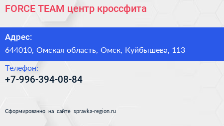 FORCE TEAM, центр кроссфита по адресу 644010, Омская область, Омск, Куйбышева, 113 в дальнейшем Организация, размещена в следующих категориях: