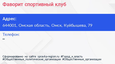 Фаворит, спортивный клуб по адресу 644001, Омская область, Омск, Куйбышева, 79 в дальнейшем Организация, размещена в следующих категориях: