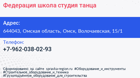 Федерация, школа-студия танца по адресу 644043, Омская область, Омск, Волочаевская, 15/1 в дальнейшем Организация, размещена в следующих категориях: