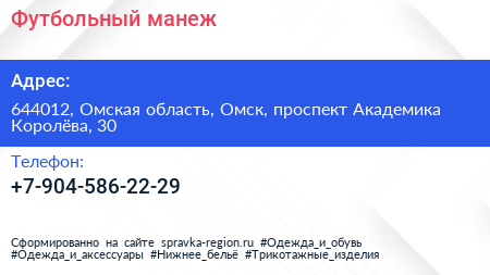 Футбольный манеж по адресу 644012, Омская область, Омск, проспект Академика Королёва, 30 в дальнейшем Организация, размещена в следующих категориях: