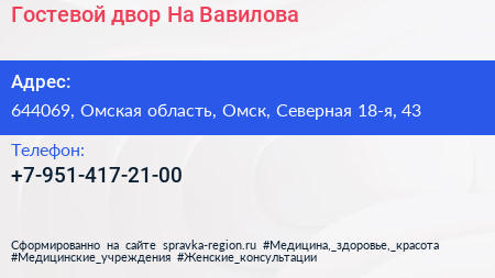 Гостевой двор На Вавилова по адресу 644069, Омская область, Омск, Северная 18-я, 43 в дальнейшем Организация, размещена в следующих категориях: