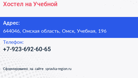 Хостел на Учебной по адресу 644046, Омская область, Омск, Учебная, 196 в дальнейшем Организация, размещена в следующих категориях: