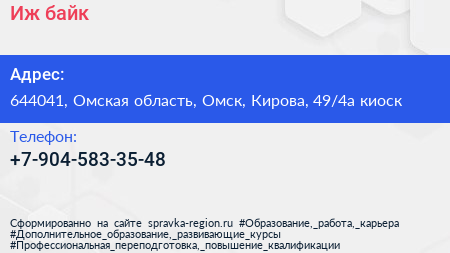 Иж-байк по адресу 644041, Омская область, Омск, Кирова, 49/4а киоск в дальнейшем Организация, размещена в следующих категориях: