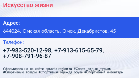 Искусство жизни по адресу 644024, Омская область, Омск, Декабристов, 45 в дальнейшем Организация, размещена в следующих категориях:
