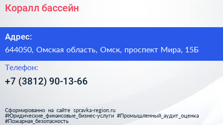 Коралл, бассейн по адресу 644050, Омская область, Омск, проспект Мира, 15Б в дальнейшем Организация, размещена в следующих категориях: