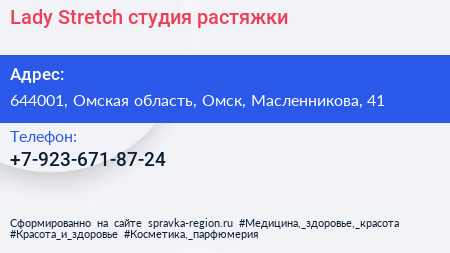 Lady Stretch, студия растяжки по адресу 644001, Омская область, Омск, Масленникова, 41 в дальнейшем Организация, размещена в следующих категориях: