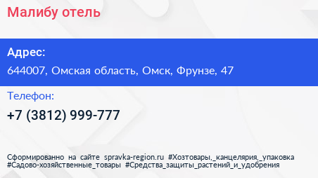 Малибу, отель по адресу 644007, Омская область, Омск, Фрунзе, 47 в дальнейшем Организация, размещена в следующих категориях: