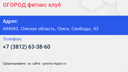 ОГОРОД, фитнес-клуб по адресу 644041, Омская область, Омск, Свободы, 43 в дальнейшем Организация, размещена в следующих категориях: