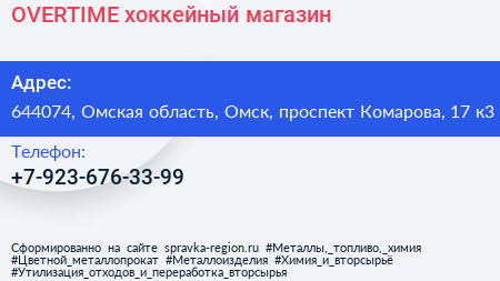 OVERTIME, хоккейный магазин по адресу 644074, Омская область, Омск, проспект Комарова, 17 к3 в дальнейшем Организация, размещена в следующих категориях: