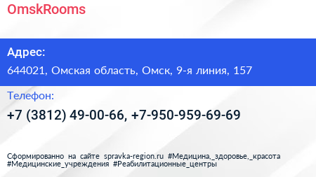 OmskRooms по адресу 644021, Омская область, Омск, 9-я линия, 157 в дальнейшем Организация, размещена в следующих категориях: