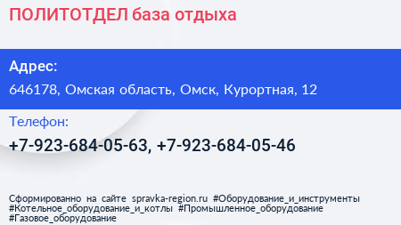 ПОЛИТОТДЕЛ, база отдыха по адресу 646178, Омская область, Омск, Курортная, 12 в дальнейшем Организация, размещена в следующих категориях: