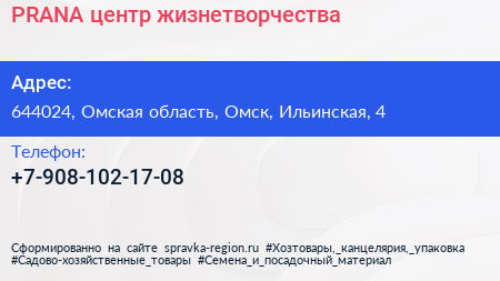 PRANA, центр жизнетворчества по адресу 644024, Омская область, Омск, Ильинская, 4 в дальнейшем Организация, размещена в следующих категориях: