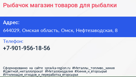 Рыбачок, магазин товаров для рыбалки по адресу 644029, Омская область, Омск, Нефтезаводская, 8 в дальнейшем Организация, размещена в следующих категориях: