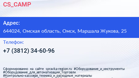 СS_CAMP по адресу 644024, Омская область, Омск, Маршала Жукова, 25 в дальнейшем Организация, размещена в следующих категориях: