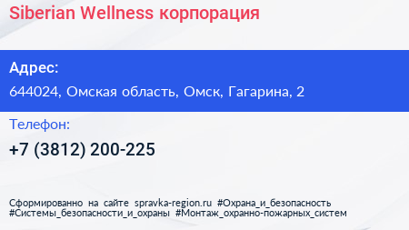 Siberian Wellness, корпорация по адресу 644024, Омская область, Омск, Гагарина, 2 в дальнейшем Организация, размещена в следующих категориях: