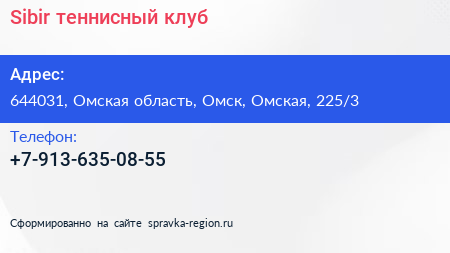 Sibir, теннисный клуб по адресу 644031, Омская область, Омск, Омская, 225/3 в дальнейшем Организация, размещена в следующих категориях: