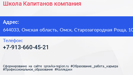 Школа Капитанов, компания по адресу 644033, Омская область, Омск, Старозагородная Роща, 10 в дальнейшем Организация, размещена в следующих категориях: