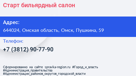 Старт, бильярдный салон по адресу 644024, Омская область, Омск, Пушкина, 59 в дальнейшем Организация, размещена в следующих категориях: