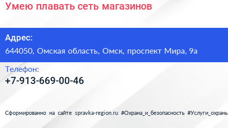 Умею плавать, сеть магазинов по адресу 644050, Омская область, Омск, проспект Мира, 9а в дальнейшем Организация, размещена в следующих категориях: