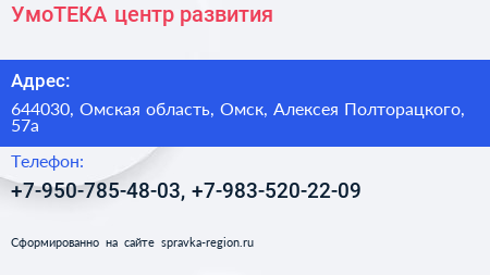 УмоТЕКА, центр развития по адресу 644030, Омская область, Омск, Алексея Полторацкого, 57а в дальнейшем Организация, размещена в следующих категориях: