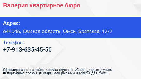 Валерия, квартирное бюро по адресу 644046, Омская область, Омск, Братская, 19/2 в дальнейшем Организация, размещена в следующих категориях: