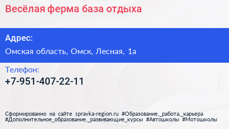 Весёлая ферма, база отдыха по адресу Омская область, Омск, Лесная, 1а в дальнейшем Организация, размещена в следующих категориях: