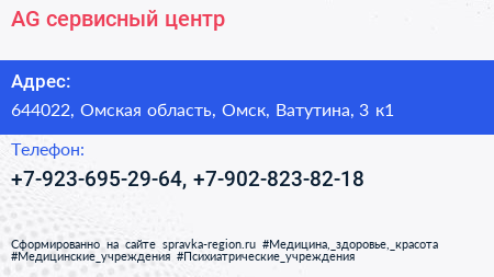 AG, сервисный центр по адресу 644022, Омская область, Омск, Ватутина, 3 к1 в дальнейшем Организация, размещена в следующих категориях: