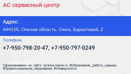 АС, сервисный центр по адресу 644110, Омская область, Омск, Бархатовой, 2 в дальнейшем Организация, размещена в следующих категориях:
