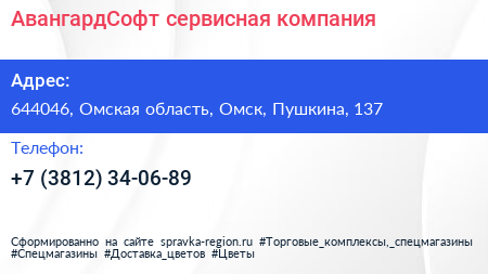 АвангардСофт, сервисная компания по адресу 644046, Омская область, Омск, Пушкина, 137 в дальнейшем Организация, размещена в следующих категориях: