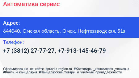 Автоматика-сервис по адресу 644040, Омская область, Омск, Нефтезаводская, 51а в дальнейшем Организация, размещена в следующих категориях: