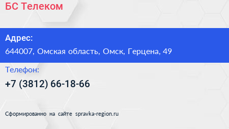 БС-Телеком по адресу 644007, Омская область, Омск, Герцена, 49 в дальнейшем Организация, размещена в следующих категориях: