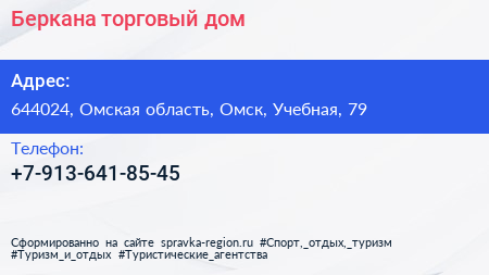 Беркана, торговый дом по адресу 644024, Омская область, Омск, Учебная, 79 в дальнейшем Организация, размещена в следующих категориях: