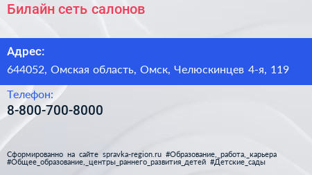 Билайн, сеть салонов по адресу 644052, Омская область, Омск, Челюскинцев 4-я, 119 в дальнейшем Организация, размещена в следующих категориях:
