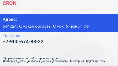 CRON по адресу 644024, Омская область, Омск, Учебная, 76 в дальнейшем Организация, размещена в следующих категориях: