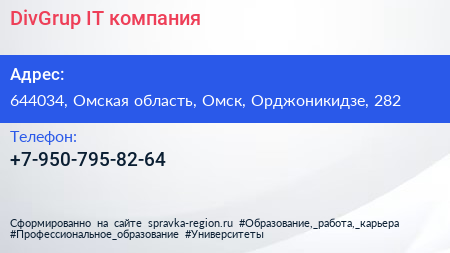 DivGrup, IT-компания по адресу 644034, Омская область, Омск, Орджоникидзе, 282 в дальнейшем Организация, размещена в следующих категориях: